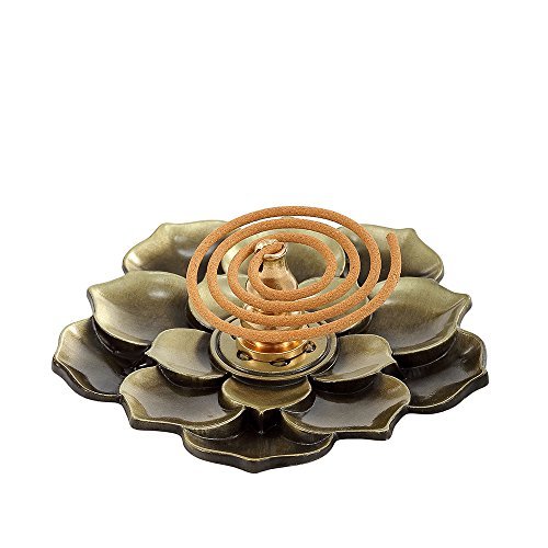 Medoosky - Bruciatore per bastoncini di incenso, a forma di fiore di loto, con supporto per coni di incenso, colore: ottone