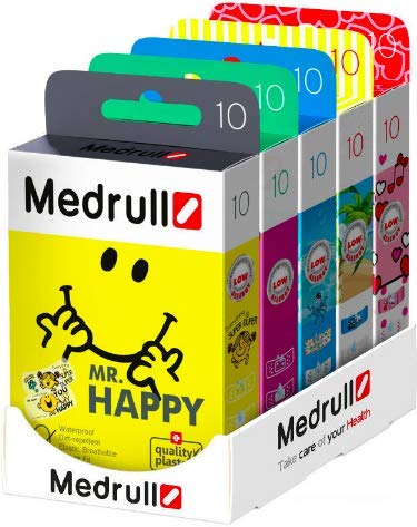 MEDRULL Cerotti Bambini 5 Packs Hello Kitty Mr Happy Marine Pirates Mimi Kids Cerotti colorati - Delicati sulla pelle Idrorepellenti Sterili 5 x 10 cerotti
