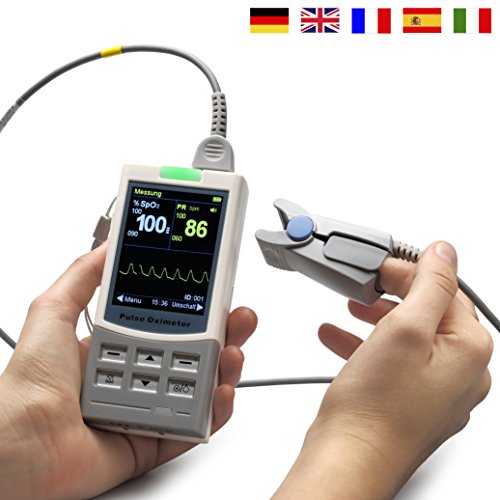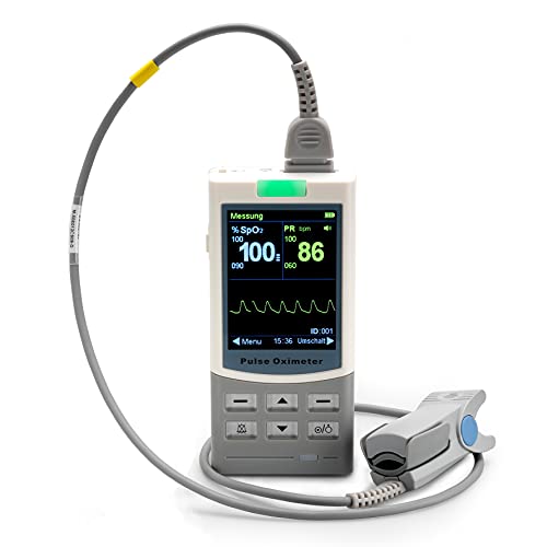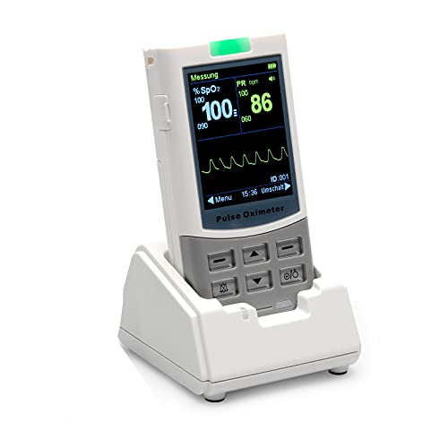 MedX5 2,8' Display (MD300M), Ossimetro per misurazioni a lungo termine con sensore, Pulsossimetro da dito con stazione di ricarica, Misuratore di ossigeno, Prodotto medico certificato