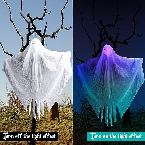 MEEKBOS Fantasmi Halloween Decorazione, 3 Pezzi Illuminare Ghosts Sospesi Halloween Decorazioni per Esterni, Cortile, Giardino, Feste e Decorazioni per le Vacanze,70 * 60CM