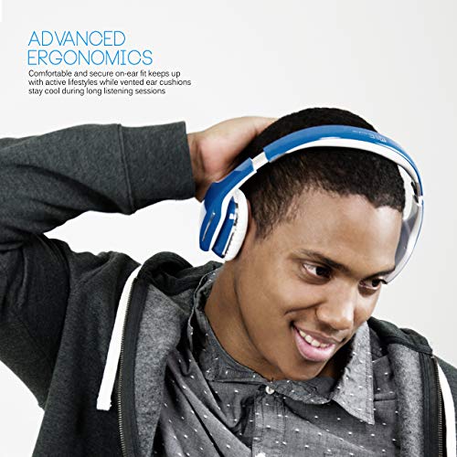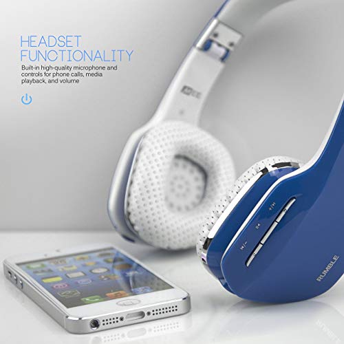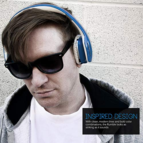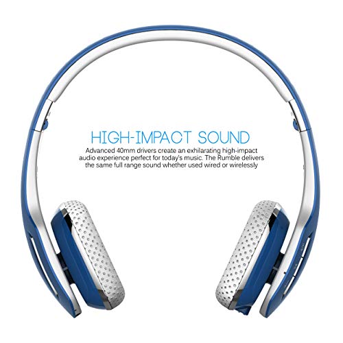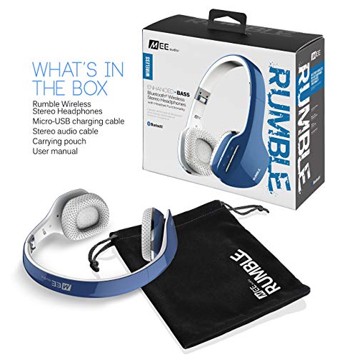 MEElectronics - Cuffie Air-Fi Rumble dal basso potenziato, bluetooth e wireless, stereo, con funzioni da headset Wireless Rumble (blu/bianco)