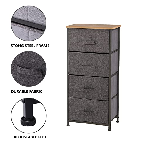 Meerveil Cassettiera Camera Letto con 4 Cassetti, Cassettiera per Corridoio in Tessuto, Pannello Superiore in Legno, Robusto telaio in metallo, per Camera da Letto, Soggiorno, Camera da Bimbo, Grigio