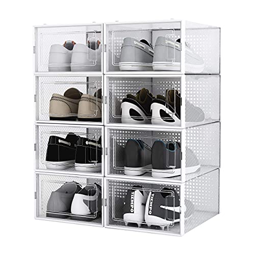 Meerveil Scatole per Scarpe, Pacco da 8 Contenitori Cartuccia di Scarpe Trasparente Pieghevole in Plastica, Scatola di Memoria cassetto, per Ingresso, Camera da Letto, Soggiorno