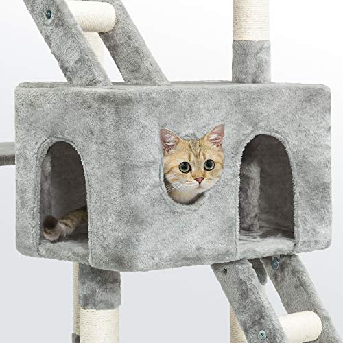 Meerveil Tiragraffi Gatto Albero con Cuccia per Gatti Albero Parco Giochi Gioco Sisal Albero Tira Graffi Palestra per Gatto 186cm, Grigio Chiaro