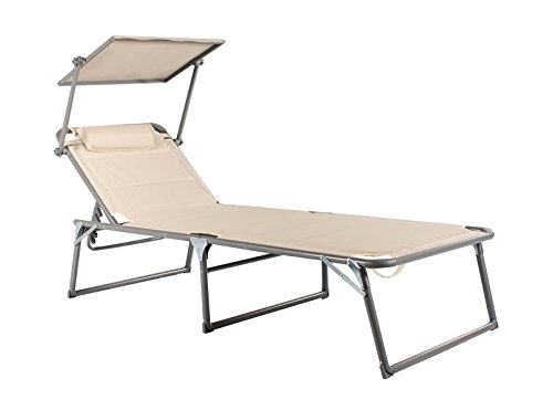 Meerweh 20039 - Sdraio da Giardino con Tetto, in Alluminio, XXL, Beige, 200 x 70 x 37,5 cm