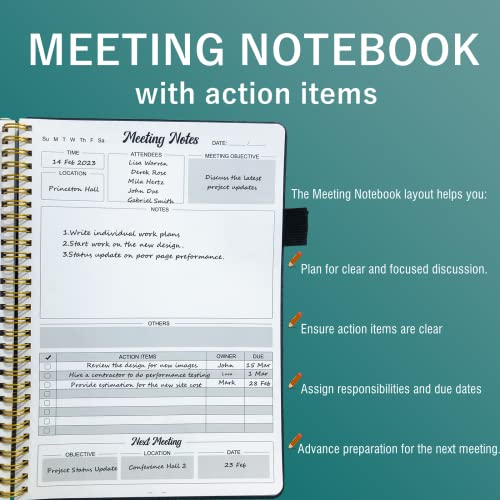 【Migliora la tua efficacia durante le riunioni】: il nostro taccuino per riunioni ti aiuterà a pianificare in anticipo, a rimanere concentrato e a chiarire gli oggetti della riunione e gli elementi di azione. È perfetto per mantenere le tue riunioni organizzate e produttive.