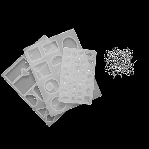 Meetory, set di 3 stampi in resina per fusione di resina, 50 viti a occhiello, in silicone, per gioielli fai da te, stili assortiti