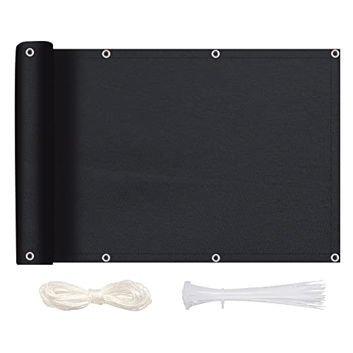 MEEYI Copri Ringhiera Balcone 70x100cm, Recinzione Copertura per Balcone con Fascette e Funi Impermeabile Protezione Solare Protezione Vento per Balconi Recinzioni Terrazze, Nero