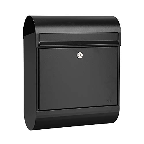 MEFA Ruby 866110DE - Cassetta delle lettere con porta giornali, colore nero, RAL 9005, con chiusura di sicurezza, 450 x 350 x 150 mm
