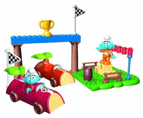 Mega Bloks 10745V - Play Set I Puffi e La Gara delle Macchine, 29 Pezzi