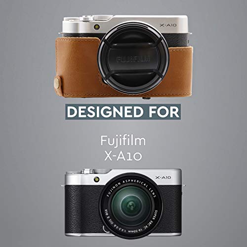 MegaGear Fujifilm X-A10 Ever Ready Custodia in ecopelle per Fotocamera con Tracolla - Marrone chiaro - MG1003