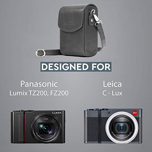 MegaGear MG1433 Panasonic Lumix DC-ZS200, TZ200, Leica C-Lux Custodia in finta pelle per Fotocamera con Tracolla - (Grigio)