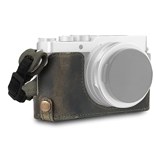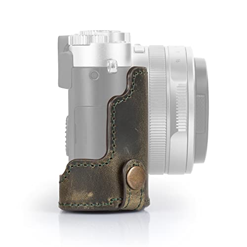 MegaGear MG1694 Ever Ready - Mezza custodia in vera pelle, compatibile con Leica D-Lux 7, colore: Verde cachi