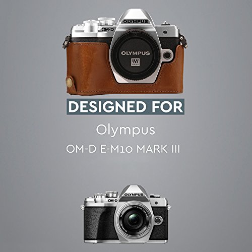 MegaGear Olympus OM-D E-M10 Mark III Ever Ready Custodia metà copertura in finta pelle per Fotocamera con Tracolla - Marrone chiaro - MG1352