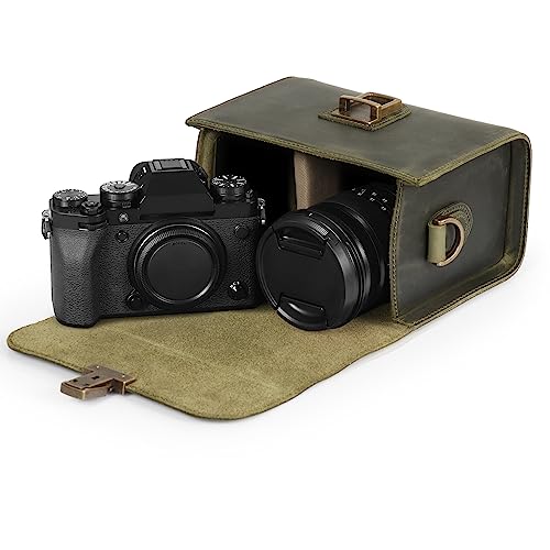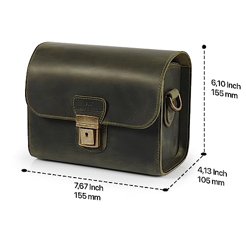 MegaGear Pebble MG1723 - Borsa messenger in vera pelle per fotocamera mirrorless, istantanea e DSLR, colore: Verde oliva