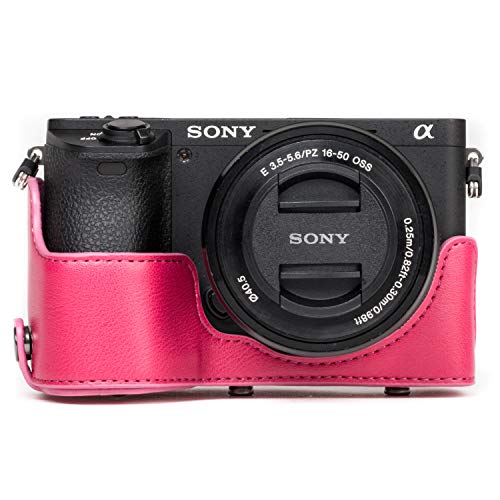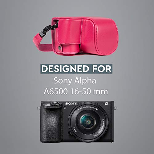 MegaGear Sony Alpha A6500 (16-50 mm) Ever Ready Custodia in ecopelle per Fotocamera con Tracolla - Rosa - MG1234