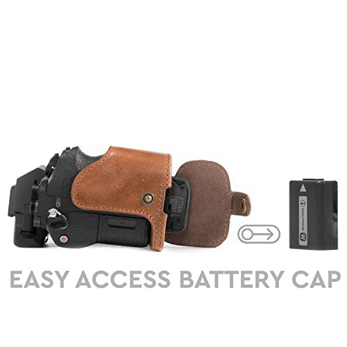 Realizzata su misura - la custodia metà copertura in vera pelle con Accesso alla Batteria è appositamente realizzata con pelle di alta qualità per fotocamere Sony Alpha A7S II, A7R II, A7 II