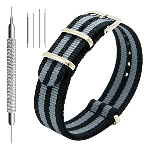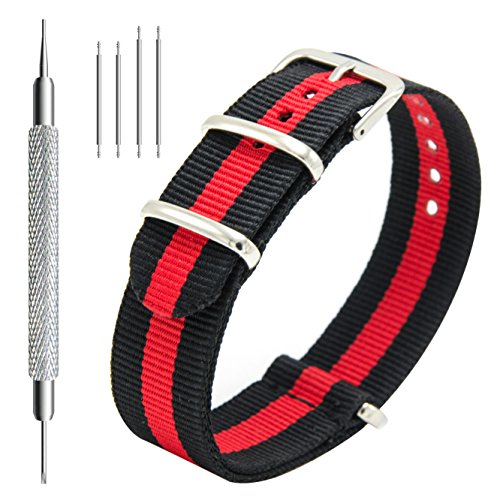 MEGALITH Cinturino Orologio 4 Pacchetti 18mm 20mm 22mm Balistico Cinturino Nato Cinturino in Nylon con Bar Primavera Link Pin Remover Strumento (22mm, Black+Bond+Linen Navy+Black Red)