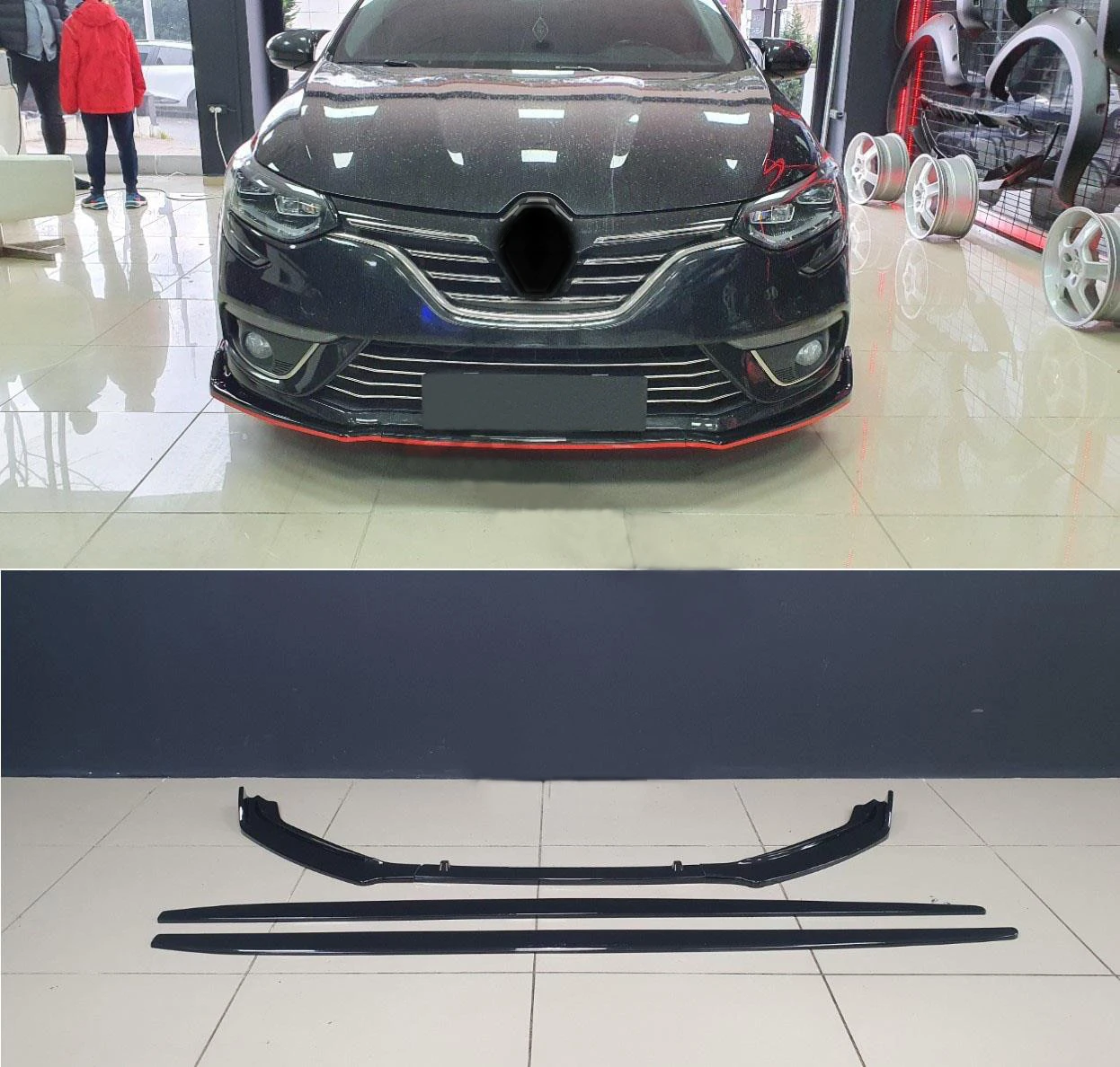 Megane 4 For Side Sill Six Lip + Front Lip Suit Red Black Lip Splitter diffuser Lip body car Styling auto accessory