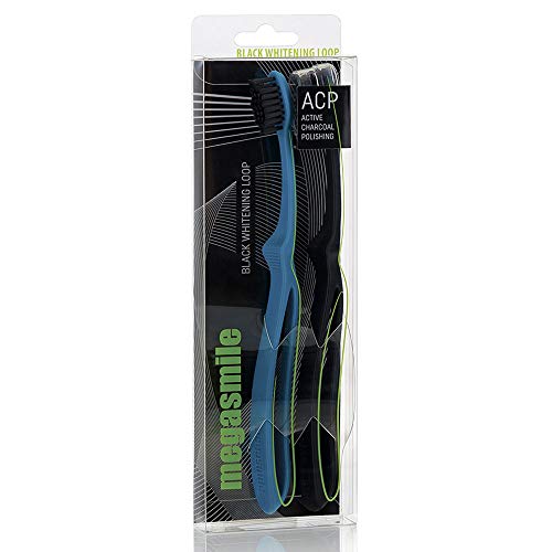Megasmile Whitening Loop Toothbrush Black Set of 2for Whiter Teeth 30Cotton Loop (200218) by Megasmile