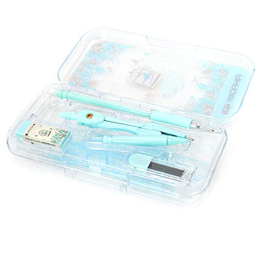 Set composto da 8 pezzi e righello: 1 righello dritto, 1 angolo di regolazione (45°), 1 triangolo (30°/60°) e 1 goniometro. In plastica trasparente per una facile misurazione. 1 compasso e 1 gomma da cancellare. Nel set geometrico c'è tutto ciò di cui la scuola ha bisogno.