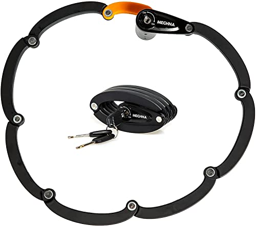 MEGHNA Lucchetto Pieghevole per Bicicletta in Lega di Acciaio con Lucchetto a Catena e Staffa di Montaggio Antifurto Forte Sicurezza con 3 Chiavi 85 cm