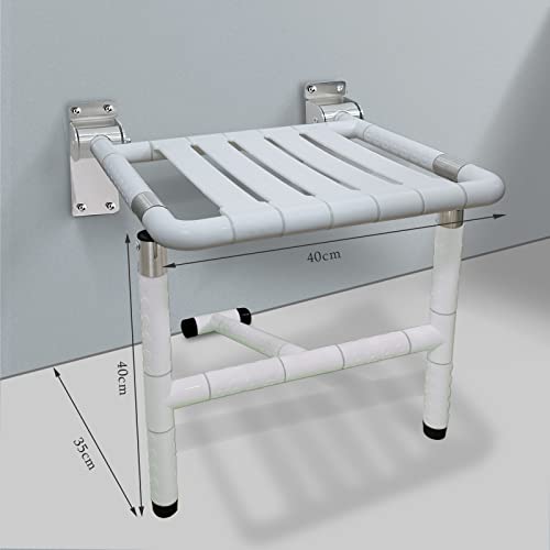 MegiaExist Sedile Doccia, Sgabello Doccia Pieghevole a Muro, Sedile per Doccia da Parete Ribaltabile, Sedile per Disabili Doccia pieghevole Bianco, Support 200kg