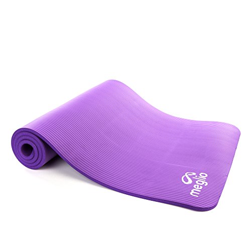 Meglio Tappetino Anti-Scivolo - Spessore 10mm in NBR - per Tutti i Tipi di Esercizi, Fitness, Yoga, Pilates, Palestra e Allenamenti - con Fascia per Trasporto