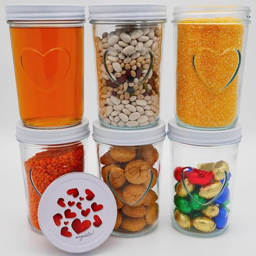 Megusta! 6 barattoli per conserve | 500 ml | cuore in vetro | 500 ml | coperchio a forma di cuore | per marmellate, cetrioli, biscotti | cuocere e congelare