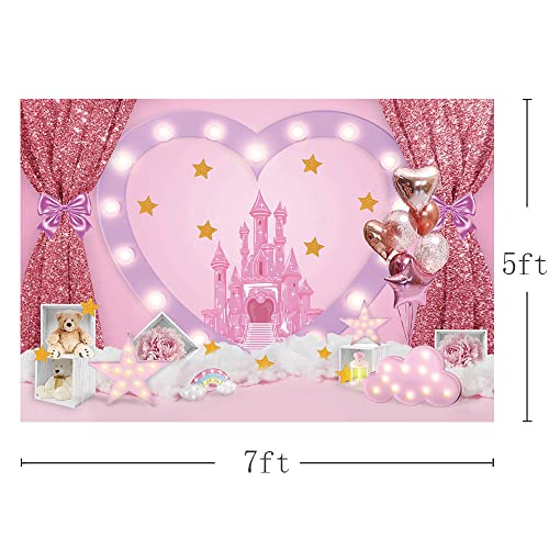 MEHOFOND 7x5ft Rosa Ragazza Compleanno Ritratto Sfondo per Fotografia Pastello Castello Tenda Palloncino Studio Fotografico Decorazione Stelle Nube Baby Shower Torta Smash Tavolo Puntelli