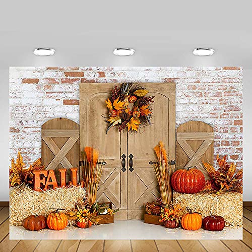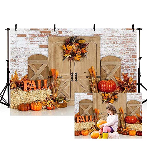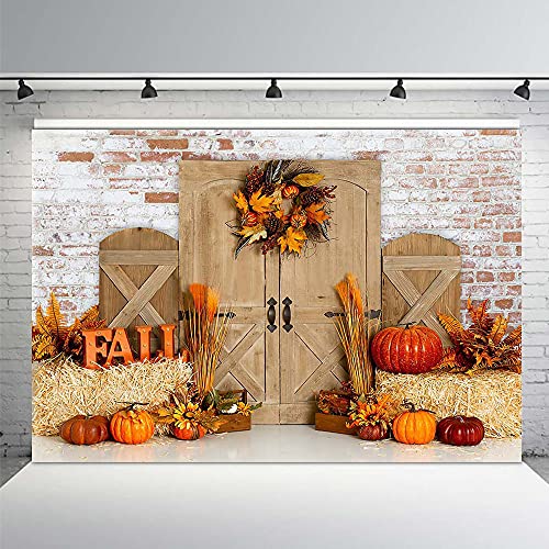 MEHOFOND - Fondale da 2,1 x 1,5 m, ritratto di caduta, raccolta di zucca, sfondo autunnale, girasole, in legno d'acero, porta rustica, per ringraziamento, fotografia, accessori per studio fotografico