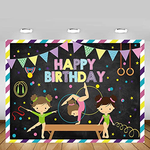MEHOFOND 2,1 x 1,5m Ginnastica Ragazza Compleanno Sfondo Ginnasta Tumbling Flip Jump Tumble and Play Festa Banner Sfondo per Fotografia Bandiera Colorata Striscia Lavagna Cake Smash Decor Photo Studio