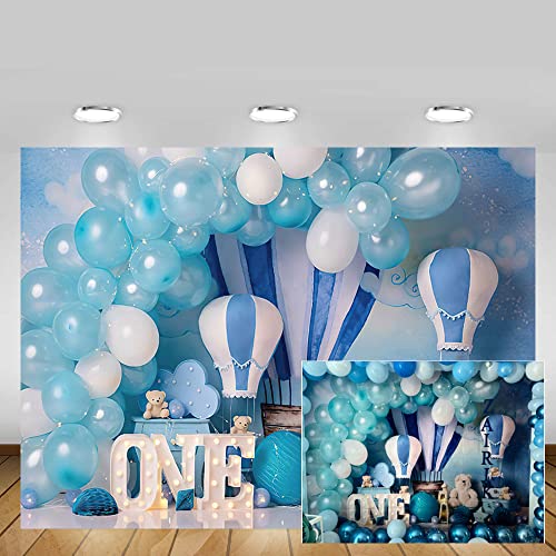 MEHOFOND 2,1 x 5 piedi Blu Ragazzo 1 ° Compleanno Fotografia Sfondi Palloncini Ad Aria Calda Orso Bambino Avventura Sfondo Bambini Festa Decor Banner Appena Fotografo Fotografo Puntelli Studio