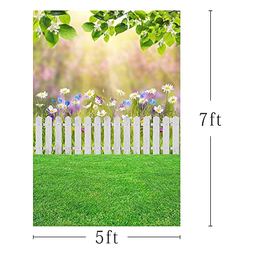 MEHOFOND 1,5x2,1 m Primavera Pasqua Fotografia Fondali Bianco Recinto Fiori Verde Prato Foglie Ritratto Sfondo Luce Solare All'aperto Photoshoot Accessori Photo Studio Puntelli