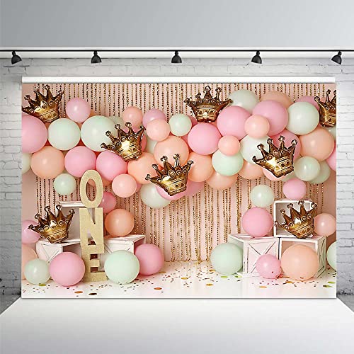 MEHOFOND 7x1,5 m Principessa Ragazza 1 ° Compleanno Fondali per Fotografia Corona Palloncini Colorati Festa Bambini Banner Bambino Un Anno Foto Sfondo Torta Smash Decorazione Ritratto Fotografico