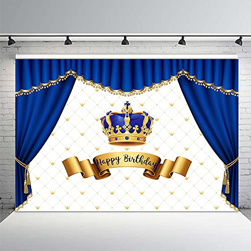 MEHOFOND 2,1 x 1,5 m blu reale e oro ragazzo compleanno foto fondale decorazione piccolo principe corona fotografia sfondo tende Bday festa festeggiamento scenditore Photoshoot Studio puntelli