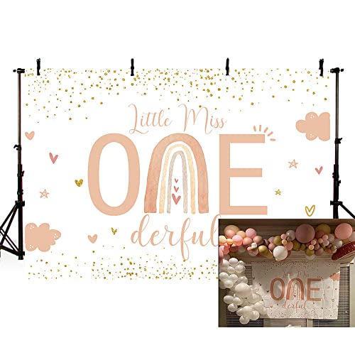 MEHOFOND Sfondo di compleanno a tema arcobaleno della Boemia 2,1 x 1,5 m per la festa della ragazza Sfondo Little Miss Onederful Fotografia Puntelli Boho Astratto Pastello Photo Studio