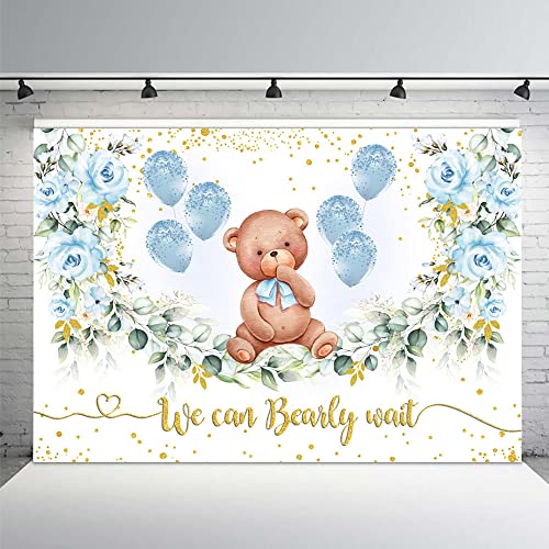 MEHOFOND 2,1 x 1,5 m verde e oro foglie di eucalipto orso baby shower sfondo per palloncini blu fiore We Can Bearly Wait fotografia sfondo festa torta Smash decorazione