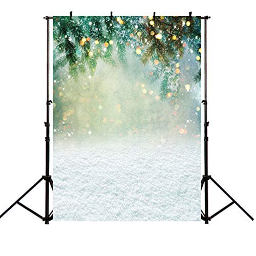 MEHOFOTO 1,5 x 2,1 m Bianco Neve Studio Foto Sfondo Inverno Natale Fiocco di Neve Paesaggio Foglie Verdi Bokeh Fotografia Fondali Puntelli