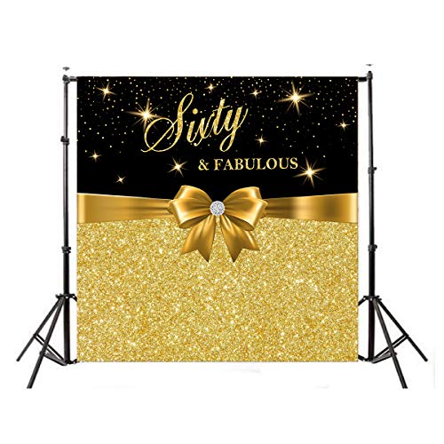 Mehofoto Sessanta e Favoloso Compleanno Sfondo 8x8ft Black Gold Bowknot 60th Birthday Party Photography Sfondo Glitter Diamanti Photo Booth Fondali Decorazione