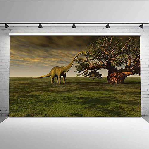 Mehofoto - Sfondo con dinosauro, 2,1 x 1,5 m, in cotone, poliestere, stile antico, creatura, prateria, sfondo fotografico senza soluzione di continuità, per bambini e adulti