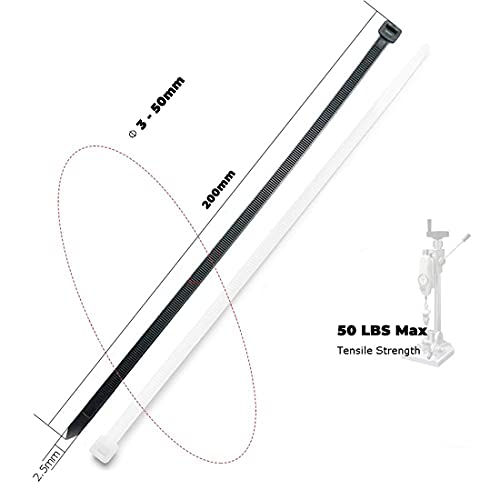 MeianJu Fascette stringicavo, Nylon Cavi Fascette Plastica Fascette Stringicavo, 100 pezzi Nero + 100 pezzi Bianco Cavi Fascette Autobloccanti in Resistenti ai Raggi UV 200 mm