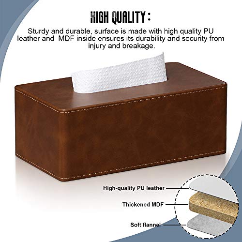 MEIBOOCH, Elegante Scatola di fazzoletti Rettangolare in Pelle PU con Fondo Magnetico per Bagno, Camera da Letto o Ufficio (Marrone)