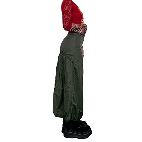 Meicywybb Gonne cargo lunghe vintage per le donne a vita bassa con coulisse ampie maxi gonne retrò estetico grunge Fairycore Streetwear, Verde militare, L