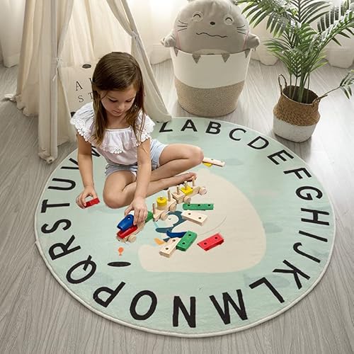 MEIFEISEWU Tappeto Rotondo Morbido per Bambini Tappeto a Pelo Basso Antiscivolo Tappeto per Gattonare Tappeto Lavabile per Camerette Ragazzi e Ragazze Tappeti per Camera da Letto