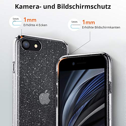 Meifigno Cover glitterata compatibile con iPhone SE 2020, iPhone 8/7, retro rigido in morbido TPU, protezione militare, con cuscino d'aria, custodia glitterata per iPhone SE 2020/8/7 4,7", glitterata