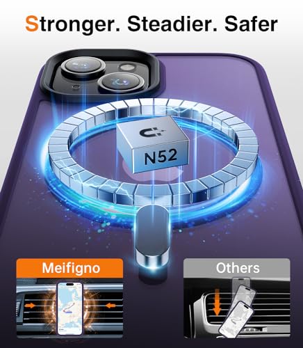 Meifigno Magic Magnetic Cover Compatibile con iPhone 15 Plus, [Militare Testato & Compatibile con Magsafe] Opaco Traslucido Cover per iPhone 15 Plus 6,7 pollici, Viola