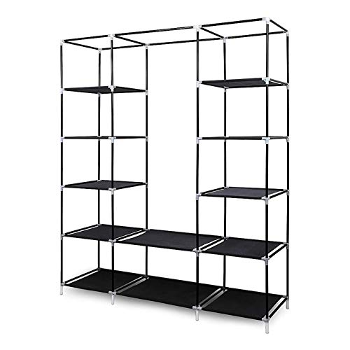 Meihe - Armadio portaoggetti in tela, armadio portaoggetti, guardaroba, in tessuto non tessuto, 172 x 134 x 43 cm, colore: Nero