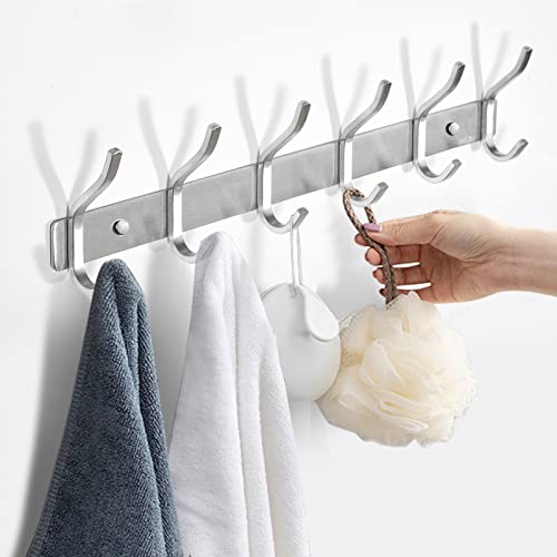 MEIJO Appendiabiti da Parete, Ganci Attaccapanni in Acciaio Inox da Muro Moderno Appendiabiti per Cameretta, Ingresso, Cucina, Bagno (6-Ganci 2pcs, Argento)