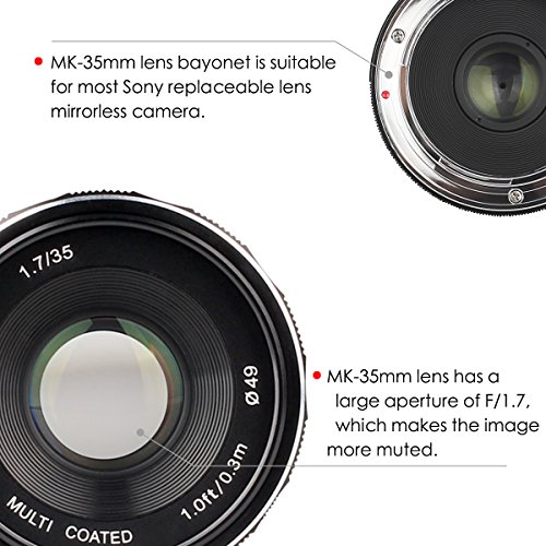 Meike, obiettivo MK-35 mm F/1.7, grande apertura, focale fissa, messa a fuoco manuale, compatibile per fotocamere Sony APS-C A6500 A6300 A6000 A6100 NEX3 NEX5 NEX6 NEX7 A5000 A5100